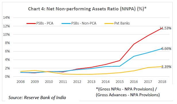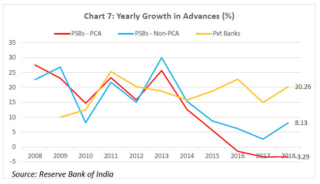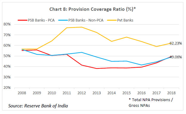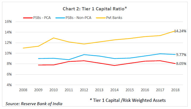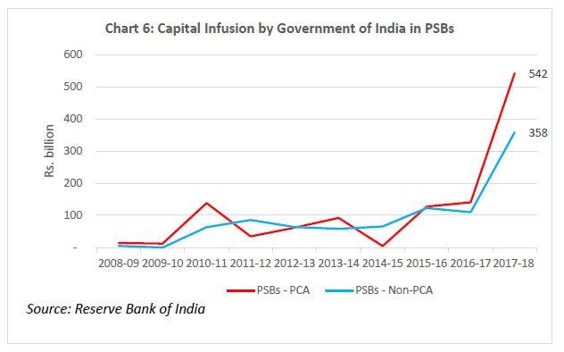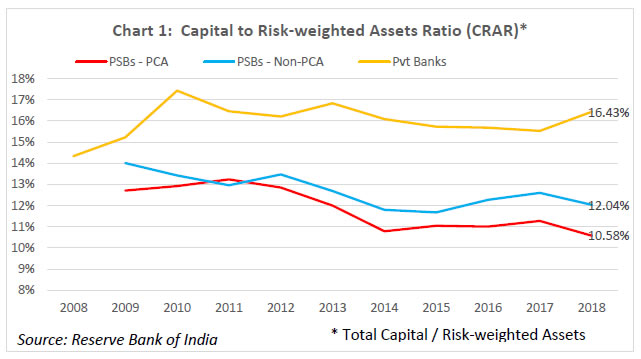 On balance, therefore, it can be concluded that the RBI’s PCA Framework is less onerous as compared to the FDIC’s PCA Framework. Let me elaborate on the point (iii) above. Purchase and Assumption (P&A) is the most commonly used resolution method by the FDIC, as part of which a healthy institution purchases some or all of the assets of a failed bank and assumes some or all of the liabilities. When deciding which of these techniques to employ, the FDIC is guided legislatively by the “least cost to the taxpayers” requirement. The FDIC seeks bids from qualified bidders for the failed bank’s assets and the assumption of certain liabilities, including deposits, and accepts the bid that is judged least costly. If no viable P&A buyer can be found, then the FDIC typically deploys a deposit payoff. A deposit payoff involves repaying insured depositors, liquidating assets of the bank, and, dividing the proceeds from asset liquidation between itself and uninsured bank creditors. The FDIC might also use a Deposit Insurance National Bank (DINB) or bridge banks to resolve a failed bank, which entail establishing a new national bank with a short-period charter from the Office of the Comptroller of the Currency (OCC). The FDIC retains the majority of the assets in its corporate capacity as the receiver and eventually sells them. In India, merger of weak banks with stronger ones has been the primary mode of resolution of weak banks in the past. Section 45 of Banking Regulation Act 1949 empowers the Reserve Bank to make a scheme of amalgamation of a bank with another bank if it is in the depositors’ interest or in the interest of overall banking system. The operation of the weak bank may be kept under moratorium for a certain period of time to ensure smooth implementation of the scheme. Many private sector banks have been merged with other private sector banks or the PSBs under this mechanism. Since the onset of reforms in 1991, there were 22 mergers in the India banking space till 2010, 11 of which were compulsory mergers under Section 45 of the BR Act, 1949 (Bishnoi and Devi, 2015). However, one of the critical preconditions for this approach to succeed is that a substantial part of the banking sector be well-capitalised. If the potential acquirers are poorly capitalised, it may result in inefficiencies in prices as well as timing in resolution of weak banks, besides increasing the risk of weakening the acquirers themselves through such acquisitions. Performance of the PCA banks in India Let me now turn to some data. The goal of the exercise will be to help understand the ten-year performance (wherever data is available) of banks on which the Reserve Bank has imposed the PCA. The reason for examining the performance of these banks over a long time period is to appreciate the fact that the progress of banks under PCA cannot be judged over a relatively short time scale. The longer the under-capitalisation and asset quality problems have festered, the more patient one has to be during the rehabilitation process. There is no quick fix or overnight silver bullet here; the reforms have to be implemented and allowed to run their course; they can’t be chopped or diluted mid-stream; the focus has to be on stability that is durable. As I explain below, there are emerging signs that the performance of banks under PCA is slowly but steadily being restored. Presently, there are twelve banks, eleven in the public sector and one in the private sector, under the Reserve Bank’s Revised PCA Framework, with PCA having been imposed on them between February 2014 and January 2018. I will focus below only on the eleven PSBs under the PCA. The share of these PCA banks in advances and deposits as on March 31, 2018 was 18.5% and 20.8%, respectively. The following trends emerge as one tracks the performance of these banks in terms of capitalisation and asset quality: (i) Capitalisation (Chart 1, 2): The declining trend of CRAR and Tier-1 capital ratio for PCA banks that started in 2011 has been arrested and the ratio has been maintained steady since 2014 at or above internationally prescribed levels. It may, however, be noted that the PCA banks have had lower CRAR and Tier-1 capital ratios compared to non-PCA banks (barring 2011), and especially private banks (right since 2009). (ii) Asset quality (Charts 3, 4, 5): Both the gross and net NPA ratios of PCA banks mirrored those of non-PCA banks up until about 2014. However, post the Asset Quality Review (AQR) exercise, the NPA recognition at PCA banks has led to a sharper rise in both gross and net NPAs, relative to non-PCA banks, and especially relative to private banks. This does not mean that AQR caused the NPAs; it simply induced the long-overdue recognition of NPAs. Notably, the stressed assets ratio, which besides NPAs includes the Restructured Standard assets (that enjoyed the regulatory forbearance under the earlier guidelines), reveals that the underlying asset quality at PCA banks was deteriorating at a sharper pace compared to non-PCA banks right since 2011, which is now accepted as the time by which the lending boom of 2009-10 began to unravel. The Tide is Turning for the PCA Banks… As I have tried to explain, an important objective of the PCA is to first and foremost limit further losses and prevent erosion of bank capital, creating a platform of stability for the bank, and in turn, setting the stage for structural interventions to be implemented and pushed through. In assessing whether this objective is being attained, three observations are in order: (i) Recapitalisation (Chart 6): The Government of India has infused more than Rs. 2,300 billion in public sector banks since 2005, more than half of which has gone into banks currently under PCA. Within PCA banks, almost half of the total infusion (i.e., Rs. 635 billion) has occurred during FY2018 and FY2019, after the banks were classified under PCA. This recapitalisation has been an important contribut