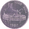Over a period of time, cost-benefit considerations led to gradual discontinuance of 1, 2 and 3 paise coins in the seventies; stainless steel coins of 10, 25 and 50 paise, were introduced in 1988 and of one rupee in 1992. The considerable costs of managing note issues of Re 1, Rs 2, and Rs 5 led to the gradual coinisation of these denominations in the 1990s. New designs depicting Rhinoceros on 25 paise and the Indian Parliament superimposed on India map on 50 paise were introduced in ferritic stainless steel.