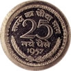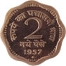 The move towards decimalisation was afoot for over a century. However, it was in September 1955 that the Indian Coinage Act 1906 was amended to pave the way for the country to adopt a metric system for coinage. The amended Act came into force with effect from 1st April 1957. The rupee remained unchanged in value and nomenclature. It, however, was now divided into 100 'Paisa' instead of 16 Annas or 64 Pice. For public recognition, the new decimal Paisa was termed 'Naya Paisa' till 1st June 1964, when the term 'Naya' was dropped. The value is described in Hindi explaining the value equal to the hundredth part of one rupee.