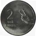 In 2007 a new series known as ‘Nritya Mudra’ was introduced in the denominations of 50 paise, Re. 1/- and Rs. 2/-. These coins were of ferritic stainless steel. The gestures used on the 50 paise was “Clenched Fist”, on Re. 1/- “Thumbs Up” and on Rs. 2/- was “Two Fingers”