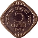 With commodity prices rising in the sixties, small denomination coins which were made of bronze, nickel-brass, cupro-nickel, and Aluminium-Bronze were gradually minted in Aluminium. This change commenced with the introduction of the new hexagonal 3 paise coin. A twenty paise coin was introduced in 1968 but did not gain much popularity.