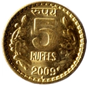 In 2009 Rs. 5/- coin design was again reverted to the previous lotus motif