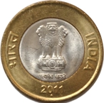In 2011, the Rupee symbol (₹), the identity mark of Indian rupee was introduced in denominations of ₹1, 2 and 5 depicting lotus buds and flower with stems and leaves on either side of the denominational value. The ₹10 coin continued to be issued in bi-metal as previously with ‘₹’ above the numeric value with ten rays instead of fifteen. New 50 paise denomination also issued in the new series.