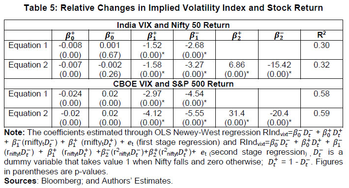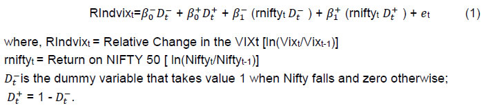 | RBI Working Paper Series No. 13 Is Implied Volatility Index (VIX) a Forward-Looking Indicator of Stock Market Movements in India? Amarendra Acharya, Subrat Kumar Seet and Prakash A. Salvi@ Abstract 1 The paper analyses the relationship between the implied volatility index and stock index in the Indian context over a relatively long period and explores whether the former can act as a forward-looking indicator for stock market investments. The findings suggest that a positive return on the stock index decreases the implied volatility, while a negative return increases it. Also, negative returns on the stock index generate larger changes in implied volatility as compared to positive returns. The size of the return too plays a major role in influencing the change in the implied volatility index. A higher level of volatility is seen to influence the buying decisions of the traders, particularly for investments at a duration of 20- and 60-days, as is the case with the stock markets in the US. JEL Classification: D53, G11, G41 Keywords: Implied Volatility Index, Forward-looking return, OLS Newey-West Introduction Financial market turbulence has often battered the global financial system. On many such occasions, governments across the globe have been forced to adopt measures to contain the economic fallout arising from the fragility of the financial markets. Such occasions have also underlined the need to find measures that can provide better insights into the behaviour of the financial markets. In stock markets, funds are raised from the investors for investment, and in exchange, the investors get a share in the profit of the firm. However, these investors face considerable uncertainty from the erratic movements in the market. Such uncertainty in the future returns is quantified through a volatility index. The Chicago Board Options Exchange (CBOE) first created a volatility index for the stock market, namely, the VIX. It acts as a barometer for expectations of volatility for the ensuing 30 days. In the Asian-Australian region, India started using it for the first time with its stock exchange disseminating an implied volatility index (Kumar, 2012). The implied volatility index is a measure of volatility perceived by market participants over a shorter horizon in the future. It is considered as the measure of the risk in the stock market. This index is an indicator of the anticipated fluctuation of the market and is generated on the basis of the order book of the underlying index options (NSE India). It is keenly watched by market participants and researchers to get a sense of the future behaviour of the market. The index generally reproduces the mean diversion of the fluctuation of a value around the long-term variance. It is also known as ‘fear gauge’ (Whale, 2009). The level of volatility is dependent on the level of price swings. A higher volatility value of the index indicates more swings in the price of the underlying stocks. A low level indicates that investors do not foresee much uncertainty in the market. While a high level implies turbulence in the financial markets, the sources of such volatility can be different. The literature suggests that volatility in financial markets is generated from longer trading hours, and the frequent arrival of new information both anticipated and unanticipated (Ross, 1989), and also by the positions taken by participants in the market and their unwinding (Brandt and Kavajecz, 2004). Another source of volatility can be the changing sentiments of investors (De Long et al., 1990). The behaviour of the implied volatility index is closely tracked by all stakeholders in the financial markets. There is a belief globally that a rise in volatility in the market generally brings with it a sharp fall in the stock index. There are two theories that explain this negative relationship between the stock index return and changes in the implied volatility index. Black (1976) postulated the leverage hypothesis which states that negative shocks to return increase financial leverage, making the stocks riskier and in turn increasing the volatility. Similarly, Poterba and Summers (1986) conceptualised the feedback hypothesis which highlights that any innovations to volatility (mostly positive ones) lower the returns. If expected future stock returns increase with an increase in volatility, as an after effect the current stock prices are likely to fall to adjust to this change in future expectations. It relies on the existence of time-varying risk premiums that link the changes in volatility and returns. There are multiple studies on the asymmetric relationship between volatility and stock return (Schewart, 1989, and Flemming et al., 1995). Studies on the Indian stock market too highlight the negative relationship between the stock index return with the relative change in the India VIX, and the two indicators tend to move independently of each other at the time of high upward movements in the market (Kumar 2010, Thenmozhi and Chandra, 2013). Interestingly, in the recent past, there have been episodes when sharp increases in equity prices have been associated with increases in implied volatility, indicating that the investors expected a greater volatility in the equity prices even in a rising market. These episodes of unidirectional movements have once again thrown open the research question concerning the relationship between market volatility and financial asset prices. Some market participants have highlighted that the India VIX going above 20 does not necessarily mean negative returns for the markets in the near term2. While a rise in the VIX generally brings market corrections, it is not necessarily deterministic3. There is a belief that markets are efficient, and hence cannot be predicted on the basis of implied volatility (Giot 2003). Finally, there are some market participants who believe that the implied volatility index is an indicator for buying /selling in the m