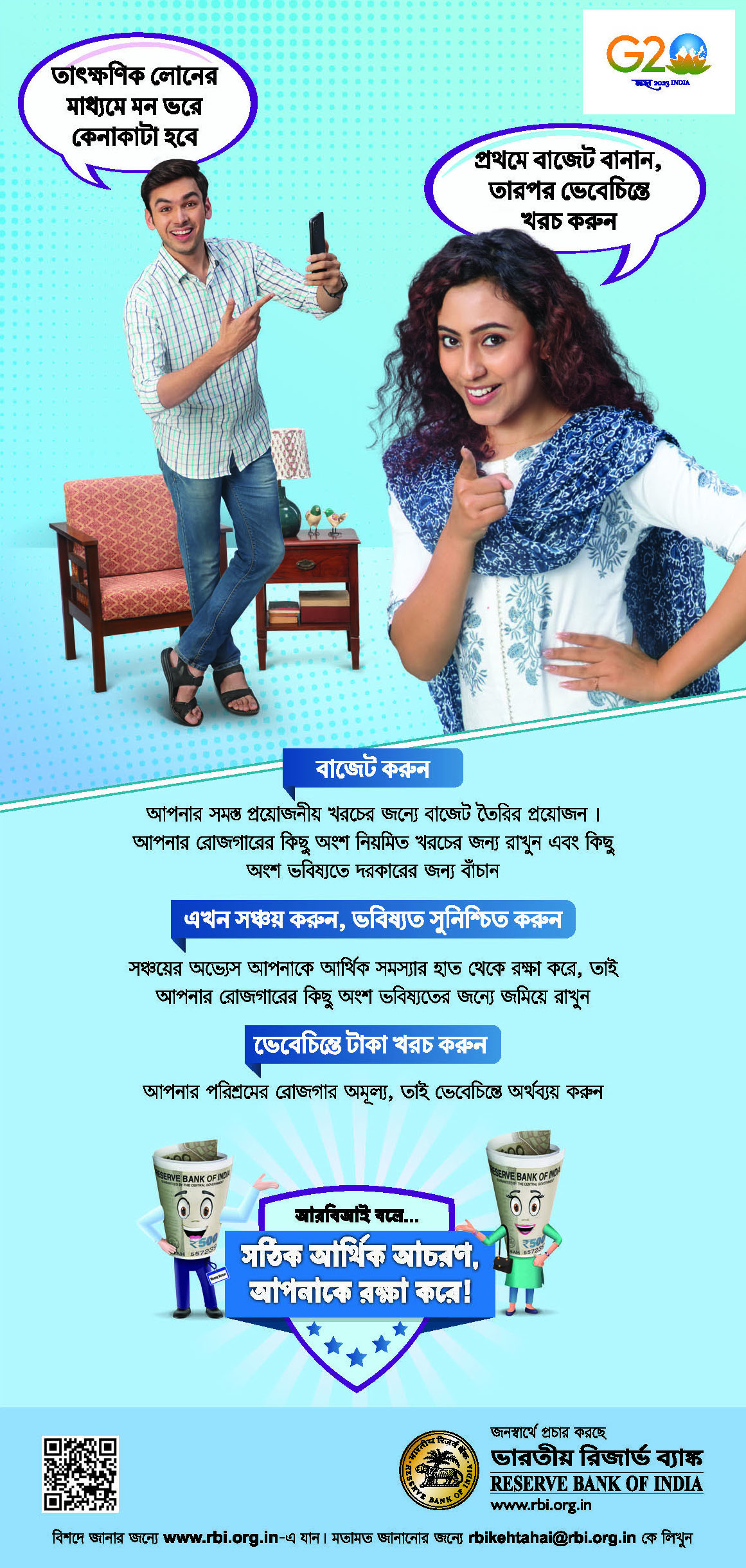 ভারতীয় রিজার্ভ ব্যাঙ্ক প্রসিদ্ধির তৃতীয় সংস্করণ ফেম (আর্থিক সচেতনতা মেসেজ) বুকলেট যা তথ্যের জন্য প্রাথমিক আর্থিক সাক্ষরতা বার্তা প্রদান করতে চায় সাধারণ জনতার জন্য. বুকলেটে বীস প্রতিষ্ঠান/পণ্যের নিরপেক্ষ আর্থিক সচেতনতা রয়েছে আর্থিক দক্ষতার চারটি থিম জুড়ে প্রাসঙ্গিক মেসেজ প্রচার করা, বেসিক ব্যাঙ্কিং, ডিজিটাল ফাইন্যান্সিয়াল সাক্ষরতা এবং গ্রাহক সুরক্ষা.