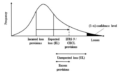 3.12. The divergences in the approaches adopted by FASB and IASB towards achieving the common objective of implementing expected credit loss approach for credit impairment stems mainly from the fact that interaction between the role of prudential regulators and loss allowances is historically stronger in the US and since many users of financial statements in the US place a greater weight on the adequacy of loss allowances in the balance sheet. Expected Credit Losses and Bank Capital 3.13. As mentioned previously, there is an allocation of mitigation responsibilities in respect of unexpected losses and expected losses between capital and provisions respectively. Incurred loss approach resulted in provisioning shortfalls that was then to be accounted for in the computation of capital requirements. ![]() 3.14. The impact of adopting the forward looking expected credit loss approach to estimating loss provisions, instead, is likely to result in excess provisions as compared to shortfall in provisions, which also is adjusted for in the computation of capital requirements. ![]() 3.15. The above description assumes that the determination of capital requirements is made under the Internal Rating based approach, and hence may not be directly relevant to banks whose determination of capital charge is made under the Standardised approach. Regardless, it can be intuitively seen that the increase in provisions, that too on a forward-looking basis, would reduce the mitigation that capital has to accord for the portion of expected losses that were not covered through provisions under the “incurred loss” approach, even for banks following Standardised approach for measuring capital charges. Classification as general and specific provisions 3.16. A more relevant aspect for banks following Standardised approach for measuring capital charges would be the prudential classification of loss provisions estimated under the expected credit loss approach into general provisions and specific provisions. General provisions are provisions held against future, presently unidentified losses that are freely available to meet losses which subsequently may materialise. Provisions ascribed to identified deterioration of particular assets or known liabilities, whether individual or grouped, are specific provisions. The Basel norms on capital adequacy for banks permit inclusion of general provisions in Tier 2 capital of 1.25% of credit risk-weighted assets (RWA) in respect of banks following Standardised approach for measuring capital charges. 3.17. Basel Committee on Banking Supervision (BCBS) has noted that the extant regulatory concepts of general provisions and special provisions have been interpreted by national supervisors in an environment in which the applicable accounting standards have generally followed an incurred loss model. BCBS further observed that jurisdictions have interpreted the definitions of general provisions and specific provisions differently, at least in part due to historical differences in how the incurred loss model for credit losses has been applied in individual jurisdictions. With the implementation of provisioning based on expected credit losses, the fact that the existing regulatory distinction between general provisions and specific provisions does not directly correspond to how provisions would be measured under the new accounting standards further complicates efforts to achieve more consistent interpretations of the regulatory definitions. 3.18. Regardless of the above, BCBS has decided to retain the current regulatory treatment of provisions for an interim period during which jurisdictions would extend their existing approaches to categorising provisions as general provisions or specific provisions to provisions calculated under the applicable expected credit loss accounting model. BCBS has recommended that regulatory authorities provide guidance, as appropriate, on how they intend to categorise expected credit loss provisions as general provisions or specific provisions in their jurisdiction to ensure consistency in this categorisation by the banks within their jurisdiction. Point-in-time vs Through the cycle 3.19. Another distinction between the requirements of estimation of provisions using the expected credit loss approach and estimation of bank capital, both of which require an estimation of probability of default, is in the nature of that probability – the bank capital computations require estimation of a through-the-cycle probability of default (i.e., estimated in economic conditions that are neutral to business cycles) whereas loss provisions based on expected credit loss approach requires estimation of point in time probability of default (i.e., probability of default computed under the current economic conditions without any prudential adjustments). This distinction underlines the divergences in objectives of prudential regulation and financial presentation wherein the former is concerned about maximising the chances of bank survival during an economic downturn (hence, the estimations of loss given default for capital computation have to be under the assumption of economic downturn regardless of the actual state of economy) while the latter is more concerned about providing information relevant to decision making by agents dealing with a firm (hence, the estimates have to be based on the current economic conditions). Therefore, even if a bank is estimating probabilities of default for capital computation, the same cannot be directly used for estimating expected credit losses, and would require additional adjustments for the purpose. Transitional arrangements for impact on bank capital 3.20. BCBS has acknowledged that the transition to expected credit loss based accounting will generally result in an increase in the overall amount of loan loss provisions, which in many cases will reduce the capital ratios of banks as they transition to the ECL approach. Accordingly, the f