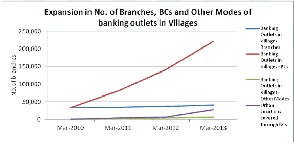 About 490 million transactions have been carried out in ICT-based accounts through BCs during the three-year period. The number of transactions through ICT-based BC outlets, though increasing, is still very low when compared with the manifold increase in the number of banking outlets and the number of accounts. The focus on monitoring is now more on the usage of these accounts, which is to be monitored through the number and value of transactions in BSBDAs and on the credit disbursed through ICT-based BC outlets. Financial Inclusion Plan 2013-16 10. The first three-year Financial Inclusion Plan of banks for the period 2010-2013 has ended. Although there has been reasonable progress in the penetration of banking services and opening of basic bank accounts, the number of transactions through ICT-based BC outlets is still low. To continue the process of ensuring access to banking services to the excluded, banks are to draw up a 3-year FIP for the period 2013-16. Banks have now been advised that their FIPs should be disaggregated to the branch level. The disaggregation of the plans is being done to ensure the involvement of all stakeholders in the financial inclusion efforts. Direct Benefit Transfer: 11. The Reserve Bank has played a proactive role in the rollout of the Direct Benefit Transfer (DBT) scheme. State-Level Bankers’ Committee (SLBC) Convenor Banks were advised to co-ordinate with the government functionaries for implementation of Aadhaar-enabled payments. Banks have to expedite the process of opening bank accounts in camp mode and seeding of accounts with Aadhaar numbers. The status of the rollout of Aadhaar-enabled payments is a regular agenda item for discussion in SLBC meetings as part of Financial Inclusion/ Electronic Benefit Transfer (EBT) implementation. The DBT was rolled out in 43 districts in the first phase from January 1, 2013, and has been extended to 78 districts from July 1, 2013. Eventually, all districts in the country will be covered. 12. High-Level Financial Inclusion Advisory Committee moving towards universal financial inclusion has been a national commitment as well as a policy priority for the Reserve Bank. In order to spearhead efforts towards greater financial inclusion, the Reserve Bank has constituted a Financial Inclusion Advisory Committee (FIAC) chaired by a Deputy Governor. The FIAC has a few Directors from the Central Board of the Reserve Bank, experts drawn from NGOs and civil society representatives as members. The expertise and experience of the members will be leveraged: to develop viable and sustainable banking service delivery models that provide accessible and affordable financial services; to develop products and processes for rural as well as urban consumers who are currently outside the banking network; and to create an appropriate regulatory framework to ensure that financial inclusion and financial stability move together. Financial Literacy: 13. Building financial capability through financial literacy is a key component of financial inclusion. It means providing financial education so that individuals can identify and use appropriate financial products and services in order to build and preserve their assets over time. It should make people better informed, better educated and more confident, able to take greater responsibility for their financial affairs and able to play a more active role in the market for financial services. 14. 718 FLCs have been set up as at the end of March 2013. A total of 2.2 million people have been educated through indoor education to walk-in persons and through outdoor activities such as awareness camps/choupals, goshtis , seminars and lectures in a one-year period, from April 2012 to March 2013. It has advised all FLCs and rural branches of scheduled commercial banks to conduct a minimum of one outdoor financial literacy camp every month. National Strategy for Financial Education (NSFE) : 15. The NSFE has been prepared under the aegis of a Technical Group of the Financial Stability Development Council (FSDC). The NSFE will be implemented in a timeframe of five years and aims to establish initial contact with 500 million adults and educate them on key savings, protection and investment-related products so that they are empowered to take prudent financial decisions. It also seeks to create awareness about consumer protection and the grievance redressal mechanisms available in the country. Under the NSFE, a National Centre for Financial Education (NCFE) is proposed to be set up as an institutional mechanism to co-ordinate the efforts of all financial sector regulators. The NCFE will launch a common website on financial education for the country. Now to flag some issues: 16. The World bank (2012) Findex Survey on ,"Measuring Financial Inclusion Indicators"World bank Policy Research Working paper #6025 states thatin India only 35% of adults had access to a formal Bank account, only 2% of adults use a formal account to receive remittances from relatives and 4% use an account to receive government payments. These are 2011 figures and further ground has been covered but the challenges still remain. 17. Financial Inclusion Plan – Summary progress of all banks including RRBs