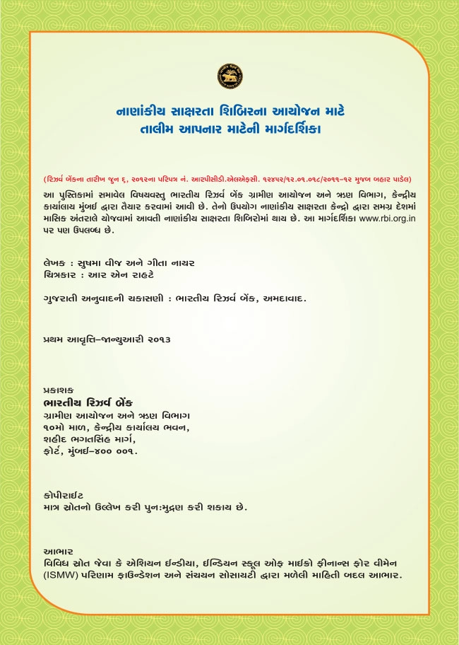 વિગતવાર બુકલેટ્સ પેજ - પ્રશિક્ષકો - પ્રશિક્ષકો માટે નાણાંકીય સાક્ષરતા માર્ગદર્શિકા - આરબીઆઈ - Reserve Bank of India