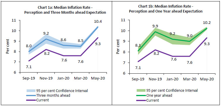 i. Households’ median inflation perception and expectations increased sharply in May 2020 as compared with the March 2020 round of the survey [Charts 1a and 1b].