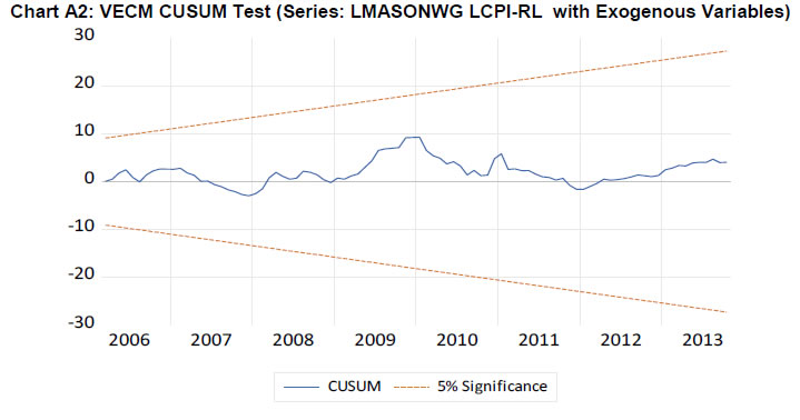 The results of the regression analysis show that during November 2013-November 2017 changes in rural prices had a positive and significant impact on changes in nominal agricultural wages in a contemporaneous manner (Table 5). However, the results also point to a remarkable feature of nominal agricultural wages in India, i.e., nominal wages are generally sticky, as indicated by negative and statistically significant coefficient of price with lags, which implies that wages today will not adjust completely to changes in prices. In other words, wage stickiness means that the next period’s real wage will not show a complete adjustment, even when the inflationary/deflationary shock is over. The results also show a positive and statistically significant impact of construction wage on agricultural wage. It is important to note that not only the current period construction wage has a positive impact on agricultural wage, but also construction wage with a two period lag impacts agricultural wages positively. This further establishes the role of rural non-farm sector in driving agricultural wage growth. Signs of the coefficients with one period lag have generally turned out to be negative, primarily hinting at the sticky nature of nominal wages. Unlike in the past, MGNREGS seems to have failed to create much of an impact on agricultural wages during this period of analysis, with its coefficients not being statistically significant. When a similar model with construction wage as the dependent variable is estimated, the results show that changes in one period lagged construction wage, same period agricultural and MGNREGS wages have positive impact on construction wage. Furthermore, in case of construction wages, the coefficients associated with CPI-RL did not come out to be statistically significant even upto two lags. However, replacing CPI-RL with CPI-RL– food produced statistically significant coefficient for lag 1. This could possibly be because of the fact that during this period, construction wages already witnessed a significant downturn due to a prolonged slackness in the sector. Therefore, any further fall in wages due to moderation in inflation might not have been possible. VI. Conclusion The main objective of the paper was to study the relationship between rural wages and prices over the past 15 years and to examine the risk of a wage-price spiral to the inflation trajectory in India. Another objective of the paper was to identify the factors responsible for the recent slowdown in rural wage growth. The short-run and long-run dynamics of changes in rural wages and prices were examined in terms of lead-lag relationship by analysing cross-correlation coefficients. While the analysis of cross-correlations provides some insights on the relationship between the two variables, it does not explain the complicated dynamics which often characterize the macro variables. Therefore, the paper used cointegration and Vector Error Correction Model (VECM) to look at the short-run and long-run dynamics between wages and prices. The paper also analysed the determinants of the deceleration in rural wage growth in recent years using dynamic panel data analysis with Arellano–Bover/Blundell–Bond system GMM structure. The results showed that in the long-run both nominal agricultural wage and non-agricultural wage have statistically significant positive relationship with prices. The results of the panel regression analysis showed that during November 2013-November 2017, rural prices had a positive and significant impact on nominal agricultural wages in a contemporaneous manner. The results also indicated that nominal wages are usually sticky. Proxied by construction sector wage, the rural non-farm sector wage showed a positive and statistically significant relationship with the agricultural wage growth, indicating the role of rural non-farm sector wage behavior in influencing agricultural wage growth. @ Sujata Kundu is a Research Officer in the Department of Economic and Policy Research (DEPR), Reserve Bank of India, Mumbai – 400 001. 1 The author is sincerely thankful to Binod B. Bhoi, Director, RBI for his valuable comments on the first draft of the paper. The earlier version of the paper was presented in the International Conference on Economics and Finance, organized by BITS Pilani, KK Birla Goa Campus. The author would like to express sincere thanks to Mr. Jose Antonio Pedrosa Garcia and Prof. Chetan Ghate for their useful comments as discussants in the conference. The author expresses sincere thanks to Prof. A. Ganesh Kumar, Joice John, Sitikantha Pattanaik, Rajiv Ranjan and Jai Chander for their valuable comments on the paper and encouragement. Further, the author expresses sincere gratitude for the comments received from the participants of the DEPR Study Circle presentation. Also, special thanks to Bikash Maji and Anirban Sanyal for their assistance related to statistical techniques. The views expressed in this paper and errors, if any, may be attributed to the author only. 2 Rural inflation is represented by inflation based on Consumer Price Index of Rural Labourers (CPI-RL), published by the Labour Bureau, Shimla, Ministry of Labour and Employment, Government of India. 3 According to the National Sample Survey Employment-Unemployment Rounds, by 2011–12, construction was the largest employer of males and the second largest employer of females after manufacturing in the rural non-farm sector. Also, workers who moved out of agriculture and those who entered the rural labour force largely got absorbed in various construction activities, as employment growth in rural services and manufacturing was not that promising. Thus, the construction sector has played a major role in drawing rural labour out of the farm sector, thereby leading to somewhat tightening of the agricultural labour market. Further, a study by Himanshu et al. (2013) has showed that with the growing integration of the villages wit