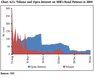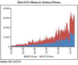 Concluding Remarks 4.47 Global financial markets, after a period of unprecedented turmoil, normalised to a degree in 2009. Spreads declined, equities recovered and volatilities receded from their peaks. Liquidity conditions improved due to swift and coordinated public policy measures. Going forward recent concerns about the sustainability of high debt levels mainly in some western European countries and the funding risk faced by banks during the coming years could pose some risks to global markets. 4.48 The global transmission of liquidity shocks was rapid and unprecedented. The steep decline in asset prices impacted market liquidity. The failure of global financial institutions and sharp deleveraging tightened the availability of funding. As the risk of growing illiquidity in markets cascading into solvency problems became entrenched, there were swift monetary and fiscal policy responses with a view to ensuring orderly functioning of markets, preserving financial stability. The global financial crisis affected all segments of the domestic financial markets. The Financial Stress Indicator (FSI) also suggests that the Indian economy experienced stress which peaked in October 2008 and lasted until March 2009. 4.49 The stress in India was felt in the form of substantial and quick correction in equity prices, excessive volatility in the foreign exchange market and pressure in the domestic money markets, emanating particularly from the reversal of capital flows and the stress on the domestic non-bank financial entities. The liquidity injection by the Reserve Bank ensured that the domestic markets stabilised by Q1 of 2009-10. The use of countercyclical regulations ahead of the global crisis helped preserve financial stability. The markets, on the strength of their robust infrastructure, continued to function in an orderly manner. Notwithstanding the financial crisis, the Reserve Bank continued with the development of financial markets with the introduction of new instruments such as currency and bond futures with appropriate safeguards.