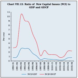 7.29 The turnover ratio exhibits substantial cross-country variations (Chart VII.4). The turnover ratio of NSE in 2005 was lower than that in NASDAQ, Korea, Japan, China and Thailand, but significantly higher than that of Singapore, Hong Kong, and Mexico stock exchanges. Automation of trading in stock exchanges has increased the number of trades and the number of shares traded per day, which, in turn, has helped in lowering transaction costs. The spread of trading terminals across the country has also aided in giving access to investors in the stock market. The opening of the Indian equity market to foreign institutional investors (FIIs) and growth in assets of mutual funds might have also contributed to the increased liquidity in the Indian stock exchanges.