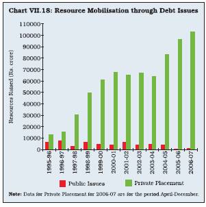 7.89 The development of any market requires removal of bottlenecks on supply as well as demand side, while putting in place alongside sound institutional and legal framework. In India, high economic growth has created ample demand for funds from the corporate sector which is reflected in sharp growth in bank credit and increased resource mobilisation from the international equity market and the private placement market. Encouraging business outlook and congenial investment climate have created stimulus for companies to undertake capacity expansion. On the supply side too, rising income levels and savings would require alternative investment options, including equity and corporate debt. The need, therefore, is to ensure that the capital market is well positioned to take advantage of these favourable factors.