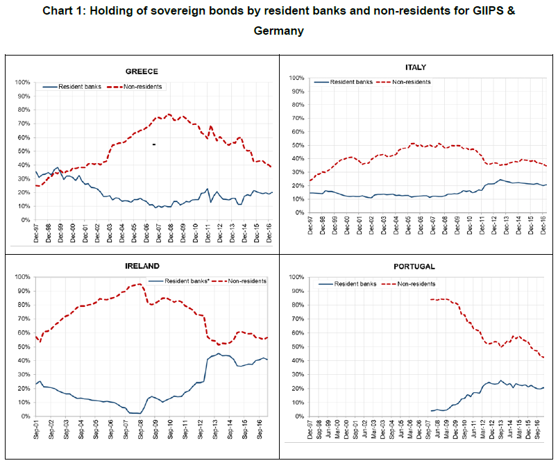 While sovereign bonds may be safer and more liquid than other instruments at a given point of time, there is no guarantee that they will remain so as both credit risk and liquidity risk of sovereign debt are dynamic in nature, and in fact, can shift deceptively so as these risks materialize from seemingly calm initial states. Sovereign debt-bank nexus and Eurozone sovereign debt crisis The potential negative impact of sovereign debt-bank nexus and the need for addressing it has attracted much international attention, particularly in Europe. Exposures of resident banks to domestic sovereign debts in countries that faced debt crisis (Greece, Italy, Ireland, Portugal, and Spain, or GIIPS) increased significantly during and after the crisis. Moreover, the increased exposure of banks to sovereign debts exhibited a domestic bias in case of the riskier sovereigns, i.e., the GIIPS, with share of resident banks increasing while that of non-residents declining; the holdings of resident banks continue to be at a high level (Chart 1). The large holdings of domestic sovereign debt by banks played a key role in exacerbating the sovereign debt crisis in peripheral European countries. From January 2007 until the first bank bailout announcement in late September 2008, there was a sustained rise in bank credit spreads while sovereign credit spreads remained low. During September-October 2008, bank bailouts became a pervasive feature across developed economies and there was a significant decline in bank credit spreads with a corresponding increase in sovereign credit spreads. In effect, bank bailouts transferred credit risk from the financial sector to the sovereigns (Acharya, Drechsler and Schnabl, 2012; 2015). However, and especially post the Greek default in 2010, sovereign spreads in the GIIPS widened too over the German Bunds due to macroeconomic concerns in the European periphery, causing significant valuation losses for banks and casting doubt on their solvency. Concomitantly, rising yields on sovereign bonds enticed banks to stock up on their domestic sovereign exposures. With continuing access to short-term funding, notably in deposit and money markets, banks in GIIPS and even some non-GIIPS countries increased investments in GIIPS sovereign bonds so as to purchase “carry” over the German Bunds, hoping for future convergence of yield (Acharya and Steffen, 2015). This “carry trade” was particularly attractive for under-capitalized banks as a way to gamble for resurrection, effectively chasing quick Treasury gains with no additional capital requirement, but doubling up on economic risks if the carry were to widen even further... and it did. The Greek default and ensuing sovereign debt crises in the GIIPS countries showed that banks having significant exposures to sovereign debt were the most susceptible to fluctuations in sovereign borrowing costs and faced attendant market plus funding consequences. Such sovereign debt-bank nexus creates a two-way feedback loop. As banks are highly exposed to the domestic sovereign, any adverse movement in yields or materialisation of a sovereign event could trigger bank under-capitalization and bailouts, which imply further sovereign borrowing and rising sovereign yields, leading to further erosion of bank capital and need for further bailouts, and so on (Acharya, Drechsler and Schnabl, 2012; 2015). Understanding and managing well the banking sector’s exposure to risks embedded in domestic sovereign debt is thus not just a matter of banking sector’s profits and capital, but in fact it is one of overall macroeconomic stability. The Indian Context In India, the linkage between sovereign debt and bank balance sheets has always been strong given the Statutory Liquidity Ratio (SLR) prescriptions for banks and the historical role that banks have played in supporting public debt. Banks, under section 24 of the Banking Regulation Act, 1949, are required to maintain minimum liquid assets (basically Government securities – both Central Government securities or G-Secs, and sub-sovereign securities called State Development Loans (SDLs)) as a percentage of Demand and Time Liabilities (DTL). This ratio has historically been as high as 38.5%, but has gradually come down to 19.5% now (Chart 2), being brought steadily in line with international levels of the Liquidity Coverage Ratio (LCR) under Basel-III. The resulting large holding of G-Secs and SDLs by banks exposes them to re-pricing of governments’ borrowing costs which could rise due to inflationary, fiscal or other domestic as well as global macroeconomic developments. I propose to (i) draw attention to the significance of this interest rate risk exposure of Indian banks; (ii) urge banks to pay greater attention and devote more resources to their Treasury operations; and, (iii) lay out some options available to banks for managing the risk efficiently. Understanding Interest Rate Risk at Banks Let us start by first principles. Interest rate risk is most simply understood by looking at the (approximate) price equation for a bond portfolio when there is a (small) change in the underlying interest rates, such as the level of government’s borrowing cost: ∆P = - P × D × ∆Y, where In other words, the value of the investment portfolio is a function of three factors: