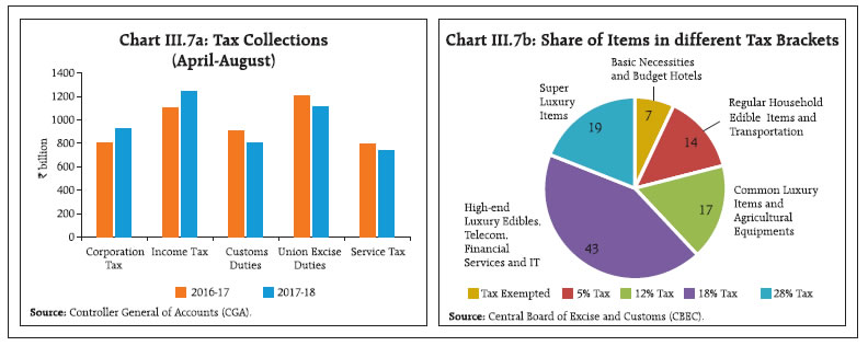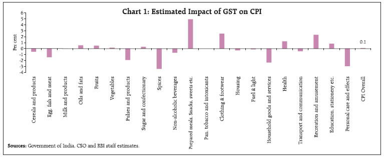 Box II.1: Impact of GST on CPI inflation The goods and services tax (GST) has been implemented from July 1, 2017 with the GST Council broadly approving a five-tier rate structure, viz., 0 per cent for commodities such as fruits, vegetables, milk, handloom, select agricultural implements and newspapers; 5 per cent for coal, sugar, tea, coffee, edible oil, economy air fares among others; 12 per cent for select processed foods among others; 18 per cent for non-durables and most of the services; and 28 per cent for most consumer durable goods and recreation services. Non-processed food items, education, health care, real estate, electricity and fuel items like petrol and diesel are exempted from the GST. A rate of 3 per cent has also been specified for gold. The major indirect taxes that were subsumed under the GST include the excise duty, the service tax, Central sales tax and State value added tax (VAT).