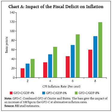 Box I.1: Farm Loan Waivers, Fiscal Stimulus and Inflation Five States – Maharashtra, Uttar Pradesh, Punjab, Karnataka and Rajasthan – have announced farm loan waivers in 2017-18 so far. Two of these states – Uttar Pradesh and Punjab – have made provisions for the likely increase in expenditure in their budgets for 2017- 18. During 2014-2016, three States – Andhra Pradesh, Telangana, and Tamil Nadu – had announced farm loan waivers aggregating ₹470 billion, but staggered over five years. There are reports of a few more States considering farm loan waivers. Furthermore, against the backdrop of the growth slowdown, there are reports that the Central Government might undertake policy actions to provide a boost to growth. Slowing growth could also have some adverse impact on tax revenues. The Central Government’s fiscal deficit could potentially widen on account of these factors. Taking these developments into considerations, the combined (Centre plus States) fiscal deficit to GDP ratio may increase by around 100 bps in 2017-18. Higher fiscal deficits per se can lead to an increase in inflation expectations and actual inflation (Catao and Terrones, 2005). Moreover, budget constraints might force some of the States to reduce their capital expenditure. If capital/infrastructural constraints are binding, a reduction in capital expenditure may turn out to be inflationary as costs – including time value/ opportunity cost of delays and material damages – go up as a result of capacity restraints becoming even more acute and due to attendant “congestion charges”. Higher market borrowings on the back of higher deficits can also put upward pressure on borrowing costs for the Centre and the States, which could spill over to the broader economy. Empirical assessment suggests that: (a) there exists a long-run relationship between fiscal deficits and inflation in India; (b) causality runs from fiscal deficits to inflation; and (c) the impact of fiscal deficits on inflation is non-linear, i.e., higher the initial levels of the fiscal deficit and inflation, higher is the impact of an increase in the fiscal deficit on inflation (Mitra et al., 2017) (Chart A).5 With the combined fiscal deficit budgeted at 5.9 per cent for 2017-18, empirical estimates suggest that an increase in the fiscal deficit to GDP ratio by 100 bps could lead to a permanent increase of about 50 bps in inflation. References: Catao, L.A. and M.E. Terrones (2005), “Fiscal Deficits and Inflation”, Journal of Monetary Economics, 52(3), 529-554. Mitra, P., I. Bhattacharyya, J. John, I. Manna and A.T. George (2017), “Farm Loan Waivers, Fiscal Deficit and Inflation”, Mint Street Memo No.5, Reserve Bank of India. Pesaran, M.H., Y. Shin and R.J. Smith (2001), “Bounds Testing Approaches to the Analysis of Level Relationships”, Journal of Applied Econometrics, 16(3), 289-326. |