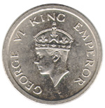 Edward VII succeeded Queen Victoria and the coins issued bore his effigy. The Indian Coinage Act, 1906 was passed which governed the establishment of Mints as well as the coins that would be issued and the standards that would be maintained (Rupee 180 grains, Silver 916.66 standard; Half Rupee 90 grains, Quarter Rupee 45 grains). George V succeeded Edward VII. Acute shortage of silver on account of World War I, led the British Government to issue paper currency of One Rupee and Two and a half Rupees. The silver coins of smaller denominations were issued in cupro-nickel. George V was in turn succeeded by Edward VIII. However no coins were issued during his short reign. Geroge VI ascended the throne in 1936. The compulsion of the Second World War led to experiments in coinage where the standard rupee was replaced by the "Quaternary Silver Alloy". The Quaternary Silver coins were issued from 1940. In 1947 these were replaced by pure Nickel coins.
