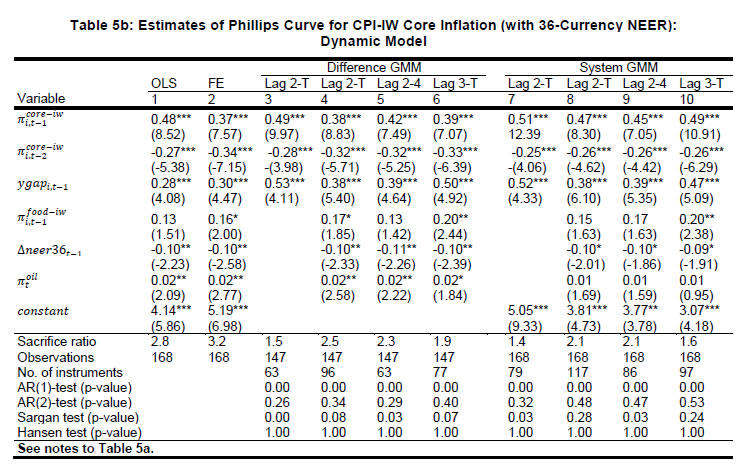 | RBI Working Paper Series No. 08 @Harendra Behera Abstract 1This paper revisits the issue of determinants of inflation in India in a Phillips curve framework and makes two key contributions in relation to existing studies. First, in the context of the Reserve Bank moving towards a flexible inflation targeting framework based on consumer price index (CPI) inflation, this paper attempts to model dynamics of the CPI inflation. Second, this paper explores the Phillips curve relationship using sub-national data in a panel-approach. The estimates in this paper confirm the presence of a conventional Phillips curve specification, both for core inflation and headline inflation. Excess demand conditions have the expected hardening effect on inflation, with the impact being more on core inflation. Exchange rate movements are also found to have a significant impact on inflation. Overall, the paper’s findings provide support for the role of a counter-cyclical monetary policy to stabilise inflation and inflation expectations. JEL classification: E31, E32, E52, E58 Keywords: Consumer Price Inflation, Exchange Rate Pass-through, Monetary Policy, Phillips Curve. Introduction A forward-looking assessment of inflation is a critical input for an effective conduct and formulation of monetary policy. The Phillips curve framework relating inflation to economic activity and other determinants such as exchange rate has been used extensively to explore this relationship both in India and across countries. In India, the focus of most of the Phillips curve studies has been on wholesale price index (WPI) as an indicator of inflation. With the move towards consumer price index-combined (CPI-C) based flexible inflation targeting beginning 2014, determinants of CPI inflation and its forecasts assume critical importance (RBI, 2014a; RBI, 2016). A key objective of this paper is, therefore, to understand the drivers of CPI inflation in a more robust framework. While some studies have modelled the inflation process for CPI for industrial workers (CPI-IW) and back-casted CPI-C, we are not aware of any study on the CPI-C inflation process per se. As the dynamics of these two price indices could be different, this paper, therefore, models both the CPI-IW and the CPI-C inflation processes and attempts to draw policy implications. The focus of the Phillips curve studies has typically been on the national level relationship, both in the Indian and the cross-country context. More recently, a number of studies have attempted to assess this relationship using the sub-national level data for a variety of reasons. First, the relatively more variability at sub-national levels in both inflation and output indicators, as also more data points, provide a rationale for examining this relationship using the sub-national level data. Second, a possible weakening of the inflation-output relationship at the national level could arise if the central bank is successful in keeping the national inflation close to its target; in such a scenario, swings in economic activity (above or below potential) may be only weakly associated with movements in the national level inflation, thereby weakening the inflation-output nexus. At the same time, the continued dispersion in sub-national data on inflation – not the central bank’s target per se - can still provide the researchers an avenue to explore the inflation-output dynamics. While such sub-national level studies have been undertaken in the context of the US and few other countries, such an endeavour has not been attempted in the Indian context. Against this backdrop, this paper empirically assesses the Phillips curve relationship for CPI inflation (CPI-IW as well as CPI-C) in India using state-level data in a panel framework. The structure of the paper is as follows: this introductory section is followed (Section II) by a brief review of the literature on the Phillips curve studies. A discussion of empirical methodology, and data sources and properties are in Section III. Empirical results across various specifications are presented and analysed in Section IV, with concluding observations in Section V. II. Phillips Curve Framework: A Review The Phillips curve framework relating inflation to economic activity continues to be the workhorse model for understanding inflation dynamics, even as it has faced a number of challenges in the past and is confronted with new complexities in the aftermath of the Great Recession (Stock and Watson, 2009). Inflation in the major advanced economies has deviated persistently from forecasts from the conventional Phillips curve specifications since 2008: actual inflation during 2009-2010 was higher than expected, while in the more recent period, especially in the US, inflation has turned out to be lower than expected. The years 2009 and 2010 were marked by the phenomenon of “missing deflation” in the US and other major advanced economies: given the large negative unemployment and output gaps, the Phillips curve framework would have predicted a sharp decline in inflation (or, even outright deflation), whereas the actual core inflation was close to its 2008 level (Ball and Mazumder, 2015). On the other hand, with the unemployment rate falling below 5 per cent in the US by 2016, close to or below its natural rate, an emergence of inflationary pressures was expected, but inflation has actually turned out to be quiescent. Although the “US Phillips curve is alive and well (or at least as well as it has been in the past)”, its inability to fully explain inflation dynamics as well as its flattening “raises serious challenges for monetary policy in the future” (Blanchard, 2016a; pp. 31 and 34). A number of alternative explanations have been offered for the missing deflation/inflation phenomenon: well-anchored inflation expectations and a flattening of the Phillips curve (Blanchard et al., 2015); the short-term unemployment rate (which has exhibited significantly 