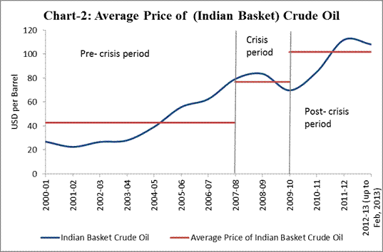 7. By far the most dominant driver of rural wages has been the Government’s affirmative action programmes, both by way of transfer payments (subsidies) and welfare programmes, which have significantly raised the demand for wage goods while also restraining supply of labour at low wages. Two other factors exacerbated the wage-price spiral. First, the large public employment programme has not only pushed up wages, but also exerted upward pressure on agricultural input prices and thereby on food prices. Second, even as wages have increased, there has been no corresponding increase in productivity - a recipe for inflation. 8. The ‘new normal’ argument drawing from this is that it will be politically difficult to reverse these entitlement programmes, they are here to stay, and that India should accept wage-price pressures as a structural feature and adjust its inflation goal accordingly. (ii) Commodity Price Pressures will Persist 9. Given the tepid recovery of advanced economies from the crisis and consequent sluggish demand, the expectation was that global prices of commodities, especially of crude, would remain soft. On the contrary, commodity prices have surged compared to the pre-crisis period (excluding the highly volatile two years of the crisis) and have remained firm at that level (Chart - 2). 10. Several forces that will extend into the medium-term, it is argued, will work to keep commodity prices firm. First, oil producers, notwithstanding assurances to the contrary, will calibrate supply to ensure a minimum floor price for crude. Second, ‘financialization of commodities’, a catch phrase used to describe a spike in commodity prices quite unrelated to fundamentals, that gathered momentum thanks to the buildup in global liquidity provided by the unprecedented quantitative easing (QE) in advanced economies is here to stay. This creates an asymmetry between financial market conditions and the real economy that will remain a structural feature of the global economy. The third argument in support of higher commodity prices is made on the basis of long-term fundamentals. These will stem from several factors: a larger world population, up from 7 billion in 2012 to over 9 billion in 2050, higher per capita energy consumption as emerging and developing economies ‘catch up’ on GDP levels, and the recovery of advanced economy growth to normal levels. 11. The new normal argument in this context is that these global price pressures will transmit to Indian prices either because of actual imports or because of largely import parity pricing, thereby stoking inflation pressures. (iii) The Positive Supply Shock of the Great Moderation Has Run Out 12. The world enjoyed an extended period of extraordinary price stability during the Great Moderation of the pre-crisis years. As we now know, this was largely the benign influence of the integration of emerging economies, especially China, into the global economy. Through the 80s and 90s, China alone added over a billion people to the global labour pool. This raised global production, but without commensurate increase in demand, and hence prices remained low. 13. The world, it is argued, will not return to the ‘Great Moderation’ situation post-crisis. As China goes forward on its ‘rebalancing’ from external demand to domestic demand, the global economy will see shrinking of low cost supplies from China and hence higher prices. The era of cheap imports is over and done forever. 14. The new normal argument in this context runs as follows. Because the positive supply shock from China has all but waned, global inflation will shift to a new normal once the recovery is complete. The Reserve Bank’s implicit formula is to calibrate its comfort level of inflation some 2-3 percentage points above the average rate of inflation in advanced economies, while also aiming to converge to the world average inflation in the medium-term. If so, it should recognize the new global normal for inflation and recalibrate its comfort level for domestic inflation accordingly. (iv) Quantitative Easing will Lead to Higher Inflation in Advanced Economies 15. Advanced economy central banks have battled the global financial crisis with an unusual show of policy force by resorting to unprecedented levels of ‘Quantitative Easing’. It is argued that this excess will haunt their economies through higher and persistent inflation once they recover to an equilibrium level. 16. Will advanced economies have an incentive to battle those inflation pressures? Possibly not. Given their extraordinary fiscal pressures and consequent heavy obligation of public debt servicing, they may in fact find it a convenient way to inflate their way out of debt. 17. The Indian dimension of this global outlook is as follows. If higher level of inflation in advanced economies on the way forward is inevitable, India should recognize this, and factor it into its policy calculus consistent with its goal of inflation a few percentage points above the average inflation in AEs. (v) India should Exploit the Positive Relationship Suggested by the Philips Curve 18. Macroeconomists have long struggled with the dilemma posed by the Philips Curve relationship. The Philips Curve is just an empirically observed positive relationship between inflation and growth (or an inverse relationship between inflation and unemployment). Notwithstanding subsequent economic research, some of it rewarded with Nobel Prizes, which showed that the Philips Curve trade-off has no theoretical basis, there is a school of thought that monetary policy can exploit this inflation-growth trade-off to achieve higher growth (or lower unemployment) by tolerating slightly higher inflation. 19. For those who believe in the Philips Curve trade-off, India presents a persuasive case for bargaining away a bit of inflation to secure higher growth because the multiplier impact of higher growth on poverty reduction will be larger in the case o