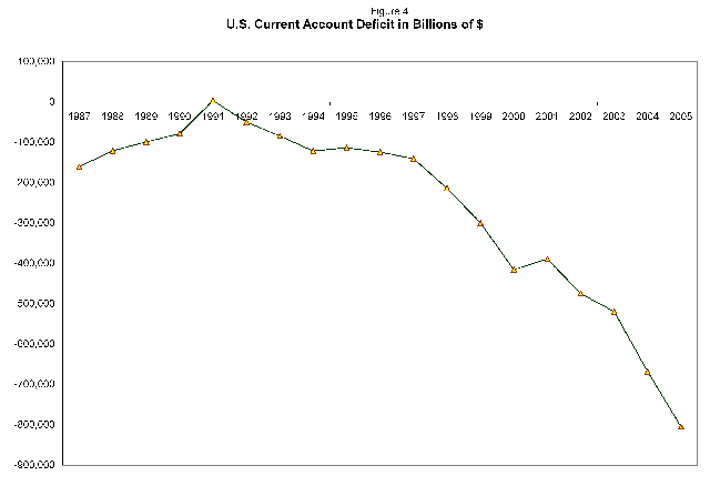 The American current account deficit is unprecedented in our economic history or that of other major economic powers. Today, it is currently running at a rate approaching 7% of GDP. Barring some discontinuity, most knowledgeable observers expect it to increase. Imports substantially exceed exports, the dollar appreciated over the last year, the income elasticity of U.S. imports exceeds that of U.S. exports, and so forth. International debt accumulation at these rates cannot go on forever.