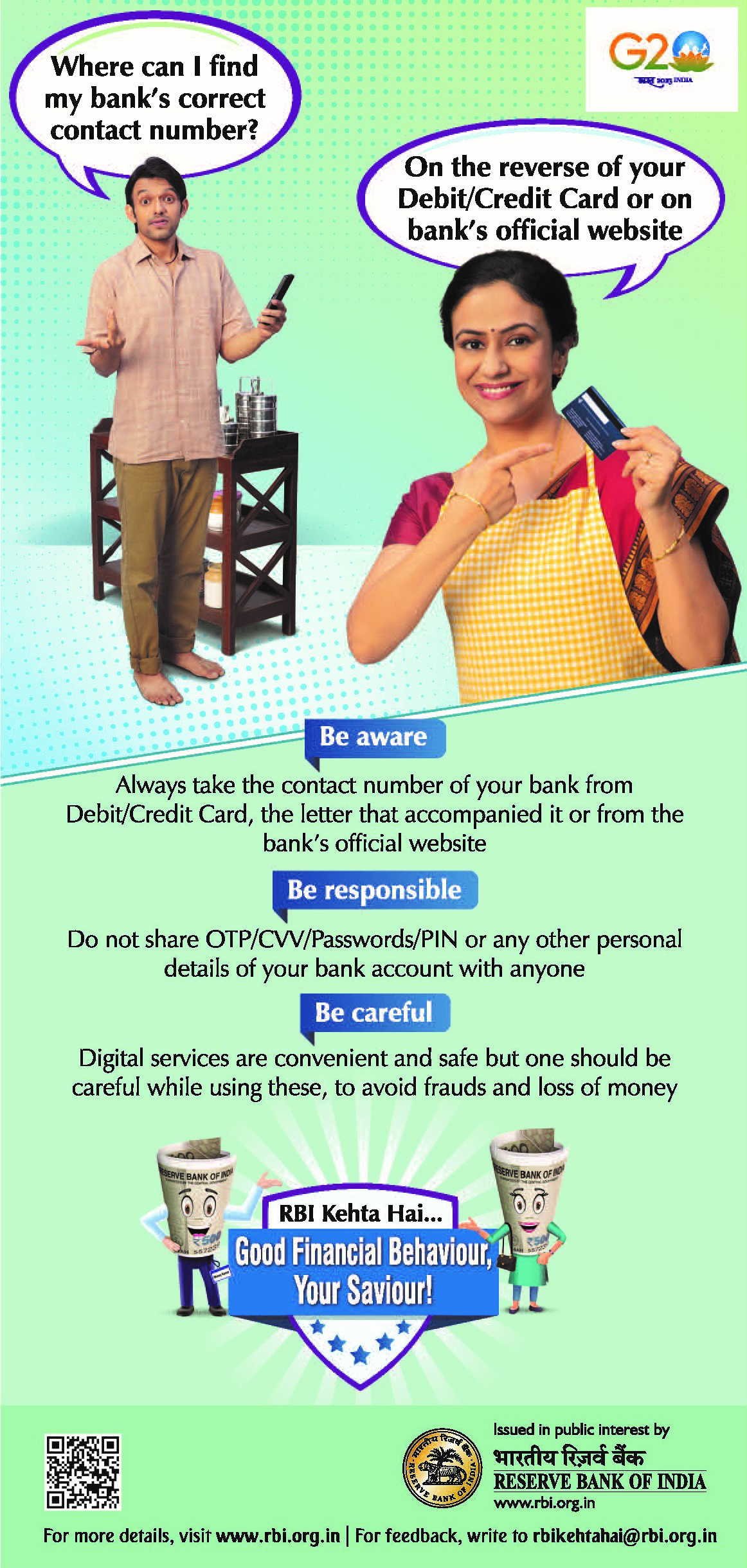 The Reserve Bank of India has released the Third Edition of the FAME (Financial Awareness Messages) booklet that intends to provide basic financial literacy messages for the information of the general public. The booklet contains twenty institution/product neutral financial awareness messages, propagating relevant messages across the four themes of Financial Competencies, Basic Banking, Digital Financial Literacy and Consumer Protection.